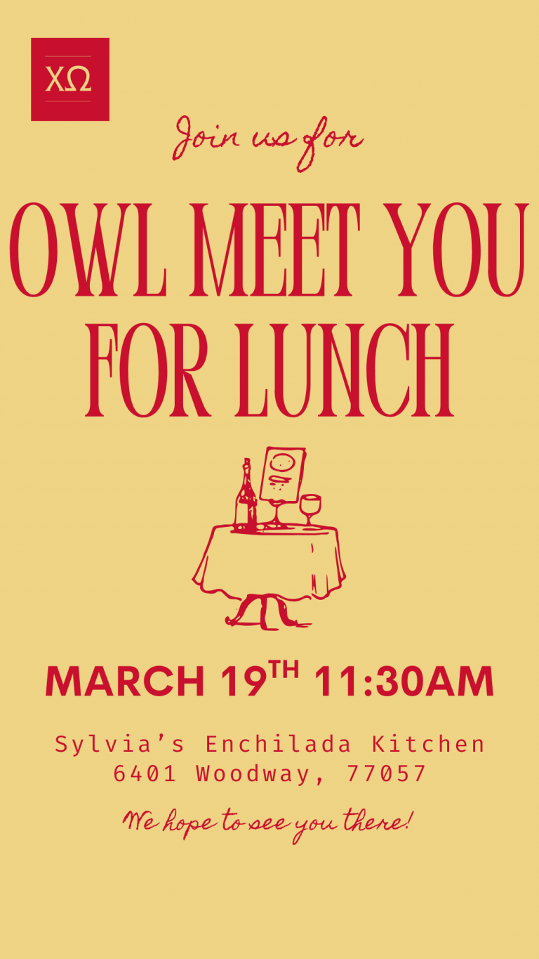 Whether you’re a familiar face or joining us for the first time, this year is all about connection, community, and Chi Omega pride. Thank you for being part of what makes our Houston alumnae chapter so special. I can’t wait to celebrate, serve, and make memories together in the year ahead.